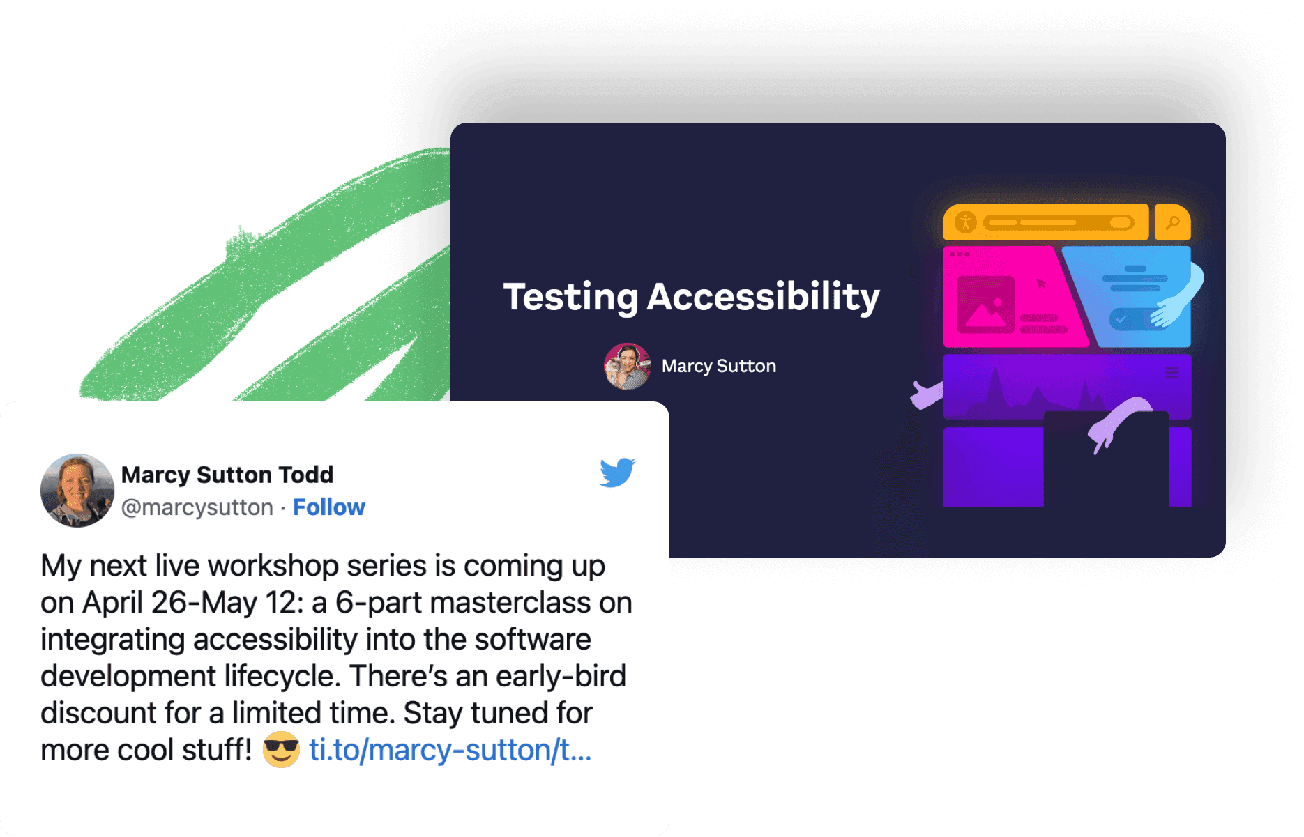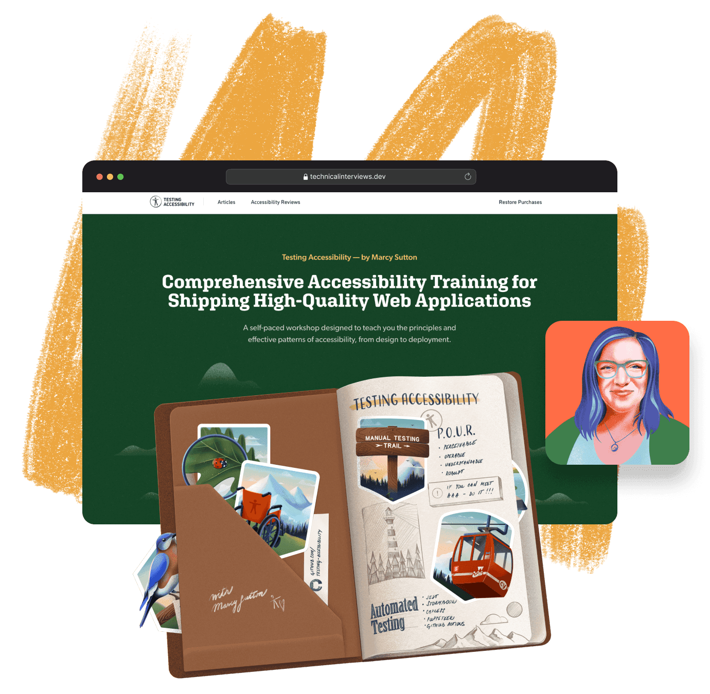 Marcy is a prolific lead accessibility engineer and teacher. Her body of work in accessibility goes back more than a decade and she spent years training hundreds of developers through workshops and talks. She created some online courses over the years, including Start Building Accessible Web Applications Today on egghead, and wanted to expand her work in this area. One magical day she found the domain testingaccessibility.com was available.